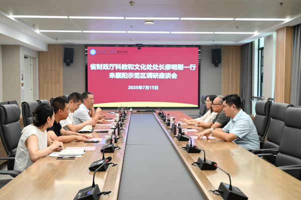 7月15日,省财政厅科教和文化处处长廖明刚一行来襄阳示范区调研。襄阳示范区常务副主任侯献军、党委书记戴福祥和相关工作人员陪同调研。