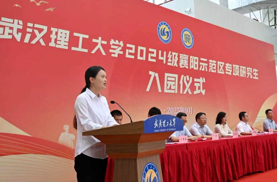 襄阳市委常委、宣传部长徐冰代表襄阳市对首届襄阳示范区专项研究生的到来表示欢迎。致辞中徐冰指出,当前襄阳正处在高质量发展的关键时期,既有行业巨头,也有专精特新中小企业,还有湖北隆中实验室等科创平台,将为研究生提供丰富的实践机会和广阔的发展空间。襄阳市委、市政府将全力支持同学们的学习深造和创新创业,希望在襄研究生将个人理想融入城市发展,在襄阳这片热土上书写精彩人生。