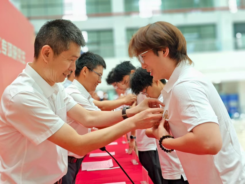 与会领导嘉宾为首届襄阳示范区专项研究生代表佩戴徽章,勉励大家努力成长为国家所需、社会所盼、行业所求的卓越工程人才,为谱写中国式现代化襄阳新篇章贡献青春智慧与力量!