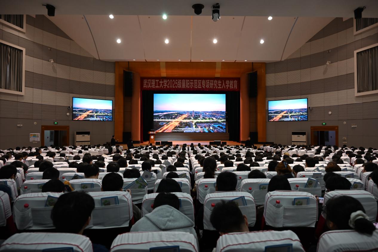 10月19日,襄阳示范区2025级专项研究生入学教育在武汉理工大学西院大礼堂隆重举行。襄阳示范区常务副主任侯献军、党委书记戴福祥、副主任张家明、副书记胡广华和相关科室负责老师共同出席此次活动,活动由副主任张家明主持。