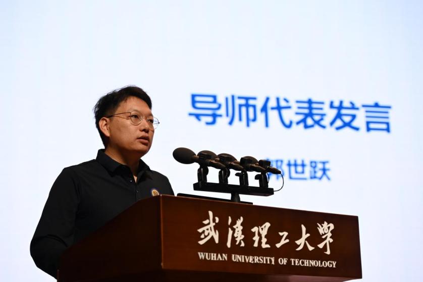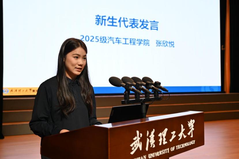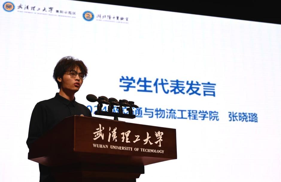 导师代表湖北隆中实验室郭世跃副研究员、在襄老生代表交通物流学院2024级研究生张晓璐、新生代表汽车学院2025级研究生张欣悦分别在入学教育上发言。
