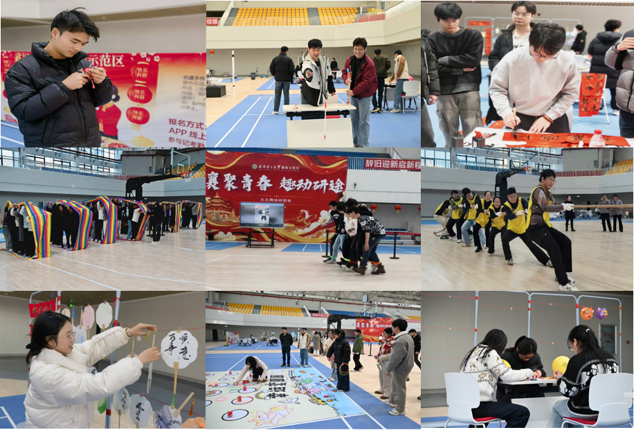 元旦将至,岁暖情浓。为丰富师生业余生活,搭建师生高效交流平台,12月25日,武汉理工大学襄阳示范区“襄聚青春,趣动研途”元旦趣味游园会在体育馆成功举办。园区师生员工齐聚一堂,共叙师生情谊、共享欢乐时光,在欢声笑语中传递校园温情,营造出浓厚祥和的节日氛围。